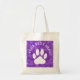 Empreinte de patte blanc. Sacs fourre-tout personnalisés. Version d'aquarelle violette. Modifier le texte pour customiser. Idée cadeau pour les amoureux de les chiens.