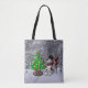 Tote Bag Arbre de Noël, Snowman, Scène De Neige Imprimé