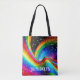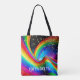 Ce design sac fourre-tout présente une belle tourbillon arc-en-ciel en trois dimensions et des vagues sur un ciel nocturne, avec des faux étoiles dorées éparpillées. Amusant et unique. Personnalisez-le avec un prénom ou un nom de famille. Ça fait un grand cadeau ! Créé par Simply Farmhouse Press.