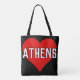 Sacs dames. Grand coeur rouge et la ville d'Athènes. Conception de sac cool.