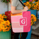 Tote Bag Bandes en rose, blanc et orange avec Monogramme