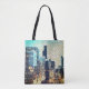Tote Bag Bâtiments de la ville bleue en mosaïque avec relie