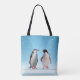 Beau couple de pingouins sur arrière - plan bleu clair.