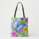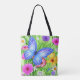 Tote Bag Beau Papillon Bleu avec fleurs Aquarelle