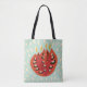 La tulipe abstraite a partout imprimé le sac avec une illustration décorative d'une tulipe rouge au-dessus d'arrière - plan bleu-clair. De la belle les pétales rouges lumineux fleur ressemblent également à une flamme. Cette belle illustration florale apporte l'humeur de ressort avec ses couleurs animées et gaies.