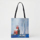 Tote Bag Big Red Michigan Lighthouse and Sailboat Peinture