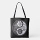 Tote Bag Black and Silver Floral Yin Yang
