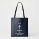 Dark blue and black flecks random scatter pattern Christian tote bag, featuring a cross. You can customize the text, including your own initials (or name if you prefer), your favorite book of the Bible, the chapter and verse, and you can include a short quote from the verse - or simply delete the quotation if you like to keep the design as just a simple book-chapter-verse style.