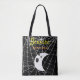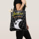 Sac fourre-tout Avec "Attention" et texte personnalisé Black avec White Spider Webs et mignon Ghost Fun et Friendly Friendly Halloween Party / Haunted House Party.