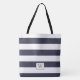 Tout cela sur tout le sac fourre-tout imprimé peut paraître simple. Des rayures horizontales blanches, un effet d'ombre difficilement perceptible, un monogramme rectangulaire tenant votre lettre initiale. Mais il y a tellement plus ! Vous pouvez remplacer le bleu foncé par n'importe quelle couleur de votre choix, ce qui fait de votre sac une sorte de sac!