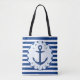 Tote Bag Bleu et blanc Trait horizontal avec Ancre
