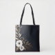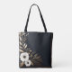 Tote Bag Bleu foncé avec or et fleurs blanches