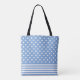 Tote Bag Bleu mignon et blanc, rayures et points modernes e