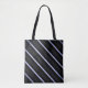 Il s'agit d'une composition géométrique à deux motifs qui présente des rayures d'angle bleu lavande sur un arrière - plan noir, créant un sentiment de mouvement tout en servant de sac d'accessoires de style de vie élégamment accentué.