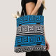 Tote Bag Blue Black White Greek Key Fret Pattern Design