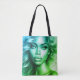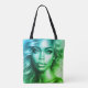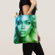 Tote Bag Blue + Green Photo of a Woman on Reusable Grocery