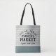 Sac fourre-tout agricole moderne rayé du marché de fermier personnalisé avec votre ville, nom de famille ou autre texte personnalisé. Veuillez noter que la texture de lin subtile fait partie du design imprimé et que le produit n'est pas fait de tissu de lin réel. Cliquez sur le bouton Customiser pour ajouter votre propre texte et créer votre propre design unique d'un genre !
