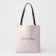 Sac fourre-tout personnalisé avec monogramme, nom ou signature en écriture cursive rose pastel, design minimaliste et féminin. Ce design présente un nom personnalisé dans une typographie de signature de style lettrage manuscrit élégant (ou calligraphie) sur un fond rose pastel ou rose blush clair. Cadeau féminin idéal pour un anniversaire, un mariage, Noël, une fête des 16 ans, une douche de mariée, une soirée entre filles, un cadeau de témoin ou pour un diplôme, et c'est pour la fille qui aime les choses d'un style minimaliste épuré.