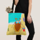 Bogue mignonne sur la plage tenant un seau de sable La fourre-tout classique avec une torsion moderne : l'impression tout-en-haut permet une personnalisation à 100%, amenant le fourre-tout de base au niveau suivant. À utiliser et ré-utiliser pour faire vos courses avec du style.