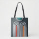 Tote Bag Boho abstract rainbow art in blue background