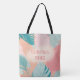 Tote Bag Boho Chic Coral rose Turquoise Feuilles Nom Baby