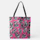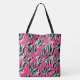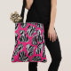Carry bold style everywhere with this zebra-striped abstract tote bag. Black-and-white stripes pop against a vivid pink background for a trendy look.