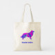 Tote Bag Bordure Collie Chien rose chaud et bleu Silhouette