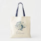 Elégant sac fourre-tout de bouquet floral bleu marine couleur aquarelle, personnalisé avec nom. Bouquet, élégantes fleurs bleu marine et feuillage délicat. Un cadeau parfait pour demoiselles d'honneur, femme de ménage d'honneur, fille de fleurs etc..