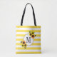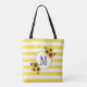Tote Bag Bright Stripes Yellow Sunflower Monogramme Floral