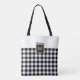Notre modèle de sac fourre-tout monogramme en plastique de buffle comprend votre monogramme en motif de buffle noir et blanc en lettres de blocs modernes et votre nom en typographie de script en lettres de brosse. Le monogramme est bordé d'un carré motif de burlap, et la partie inférieure de la fourre-tout est assortie de buffle noir et blanc plaid. On parle souvent de motif de en vichy ou de bûcheron — en coque, vous vous demandez! #Monogram #BuffaloPlaid #Totes