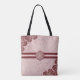 Burgundy & blush pink is a beautiful AI art that shows a feminine design with lace patterns on the corners of the bag along with burgundy stripes in the middle on a blush pink background. It is the perfect tote bag to offer to someone special.