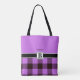 Wedding shower Party Cadeau Cute personnalisable Bridal Fourre-tout sacSac personnalisable tendance, élégant et moderne caractéristiques "nom personnalisé" sur l'arrière - plan orchidée en haut, "monogramme personnalisé" sur bande noire en dessous et arrière - plan tartan orchidée / noir en bas.