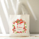 Sac fourre-tout personnalisé avec nom de demoiselles d'honneur aux fraises sucrées, cadeau de demoiselle d'honneur à ruban coquette été jardin fraise baie thème sac fourre-tout personnalisé avec nom, fraises et nœud cadeau de baby shower personnalisé sac fourre-tout cadeaux de fête prénuptiale personnalisés avec monogramme,