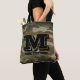 Camouflage militaire camo de l'armée verte sur tout le Sac fourre-tout imprimé. Design motif Woodland avec texte monogramme personnalisé. De taille moyenne et grande. Cadeaux personnalisés pour amis, famille, soldat, etc. Impression recto verso avec poignées noires.