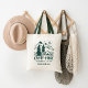 Créez un fourre-tout personnalisé unique pour votre prochain séjour en famille en camping ou en plein air. Sac fourre-tout présente la citation "camp plus, moins d'inquiétude" en vert chasseur en détresse en lettres sous une illustration dessinée à la main d'une tente de camping dans une forêt de pins avec un croissant de lune s'élevant au-dessus des sommets enneigés. La façon idéale de commémorer un voyage spécial, ou pour quiconque aime le camping, vous pouvez customiser ce fourre-tout avec votre choix de texte sous le design. Ajoutez votre destination de camping, l'année ou un nom de famille pour une touche spéciale. Nous l'aimons avec des poignées vertes chasseurs à assortir!