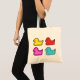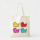 Quatre canards dotty lumineux et colorés sur un sac fourre-tout bleu mignon.