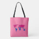 Sac fourre-tout avec une carte du monde dans les couleurs de bisexualité drapeau de la fierté avec bandes arc-en-ciel de rose, violet et bleu; ace orgueil design sur rose arrière - plan par pinkbrickroad