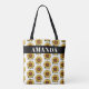 Tote Bag Cartoonish Yellow Custom Name Motif de tournesol