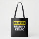CAUTION GRUMPY CELIAC tote bag. If you know any Coeliacs / Celiacs, you'll know how grumpy we can get if we can't find gluten-free food. Change the white text on this bag to whatever words you wish.