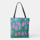 Tote Bag Champ de tulipes roses, Fleurs de printemps peintu