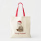 Sac fourre-tout de vacances mignon avec une adorable aquarelle illustrant un chat sibérien portant un chapeau de Père Noël avec les mots "Meowy Christmas!".