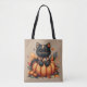 Tote Bag Chat noir sur Citrouille avec Motif de courtepoint