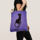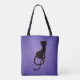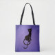 Beau chat noir sur tout le sac fourre-tout imprimé avec une illustration vectorielle de la silhouette d'un chat maléfique avec une belle queue courbée sur un arrière - plan texturé violet. Ses mauvais yeux brillent dans l'obscurité. Ce sac maléfique kitty sera grand pour Halloween car les chats noirs sont celui-ci un des symboles de cette fête. Vous pouvez voir ce beau sac de chat en rouge et en bleu. Il suffit de jeter un coup d'oeil à la collection Evil Cats de mon magasin.