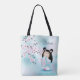 Tote Bag Cherry Blossom Kokeshi Doll rose Turquoise Nom