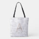 Tote Bag Chic Blush Pink White Marble Script Nom monogram
