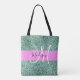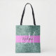 La parties scintillant rose et verte chic et glam scintille le nom du monogramme blanc et le sac fourre-tout initial. Votre nom personnalisé et votre monogramme sont écrits dans un élégant script écrit à la main avec un arrière - plan rose. Vous pouvez modifier la couleur du texte, le style et la taille de police à l'aide de l'option personnaliser. Un cadeau d'anniversaire ou de Noël parfait !