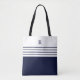 Coupez ce Sac fourre-tout chic Navy Blue Stripes avec votre Monogramme, et ajoutez une touche élégante à vos Accessoires de mode.