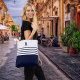 Tote Bag Chic Monogram Marine Bleu rayé