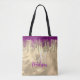 Chic or, rose chaud parties scintillant pourpre goutte Sac fourre-tout monogramme. Magnifique, moderne et cool pour le brancheur tendance et amateur d'art. Ce design élégant conviendra aux filles qui aiment les designs brillants et classe. Ajoutez votre nom et monogramme avec une typographie calligraphique cool et moderne. Cela rend le cadeau parfait pour 16 ans, mariage, douche nuptiale, anniversaire, baby shower ou bachelorette pour quelqu'un qui aime le luxe glam et les styles chic. Que ce soit pour le jour des valentines, Noël ou toute occasion en général, ce sac fourre-tout mignon fera un grand cadeau à toute femme qui aime l'élégance moderne brillante. VEUILLEZ NOTER : Il s'agit de graphiques imprimés plats - pas de parties scintillant réelle, de bijoux ou de pièces surélevées.