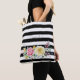 Tote Bag Chic Rose Floral tendance rayures noires et nom